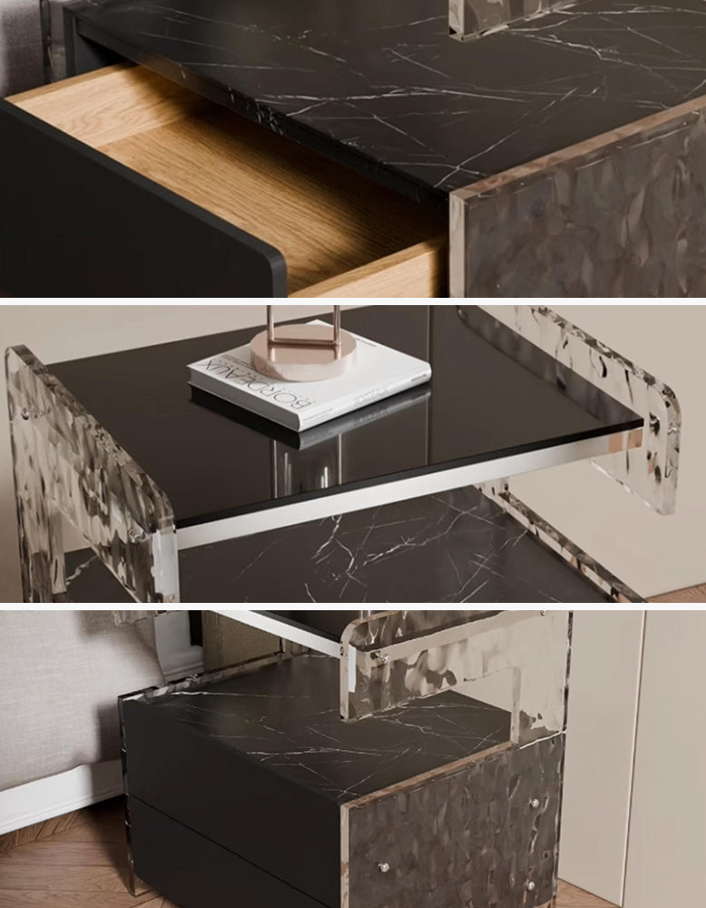 •[Organized Space] A bedside table with drawers offers practical storage solutions, keeping your personal items organized and easily accessible while maintaining a tidy appearance. •[Efficient Storage] A 2 drawer bedside table maximizes storage space, allowing you to keep essentials organized and out of sight, making it perfect for smaller bedrooms. •[Spacious Storage] The storage combines functionality and style, providing an ideal spot for a lamp while offering storage for books and nighttime essentials. •[Stylish Storage] A black wood bedside table adds a contemporary and chic touch to your bedroom, complementing various decor styles with its sleek design. •[Functional Design] A black bedside table cabinet provides both style and storage, enhancing the brightness of your room while serving as a decorative surface for lamps and decor.