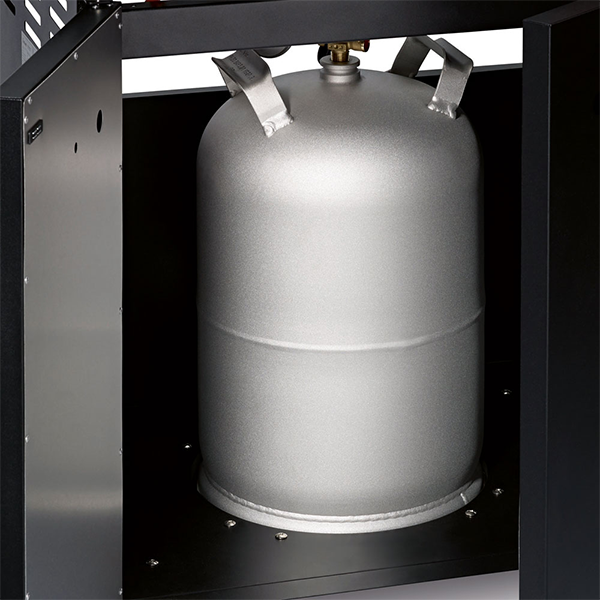- Solid Construction & Convenience – Double-walled hood with viewing window, warming rack, side prep shelves, cylinder storage, sturdy wheels, and piezo ignition