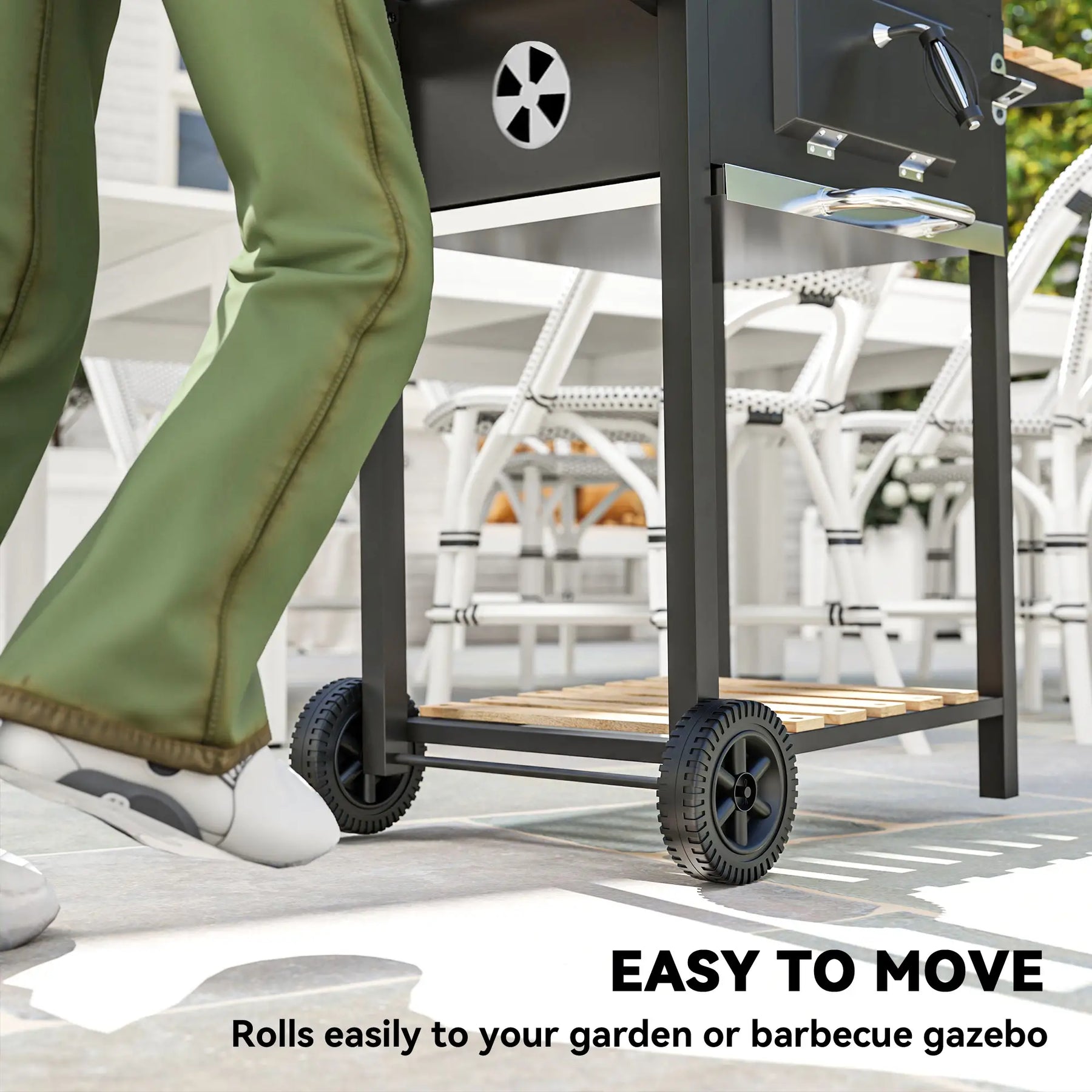 Upgrade your patio or garden with this premium trolley-style coal BBQ—powerful, practical, and ready to impress.