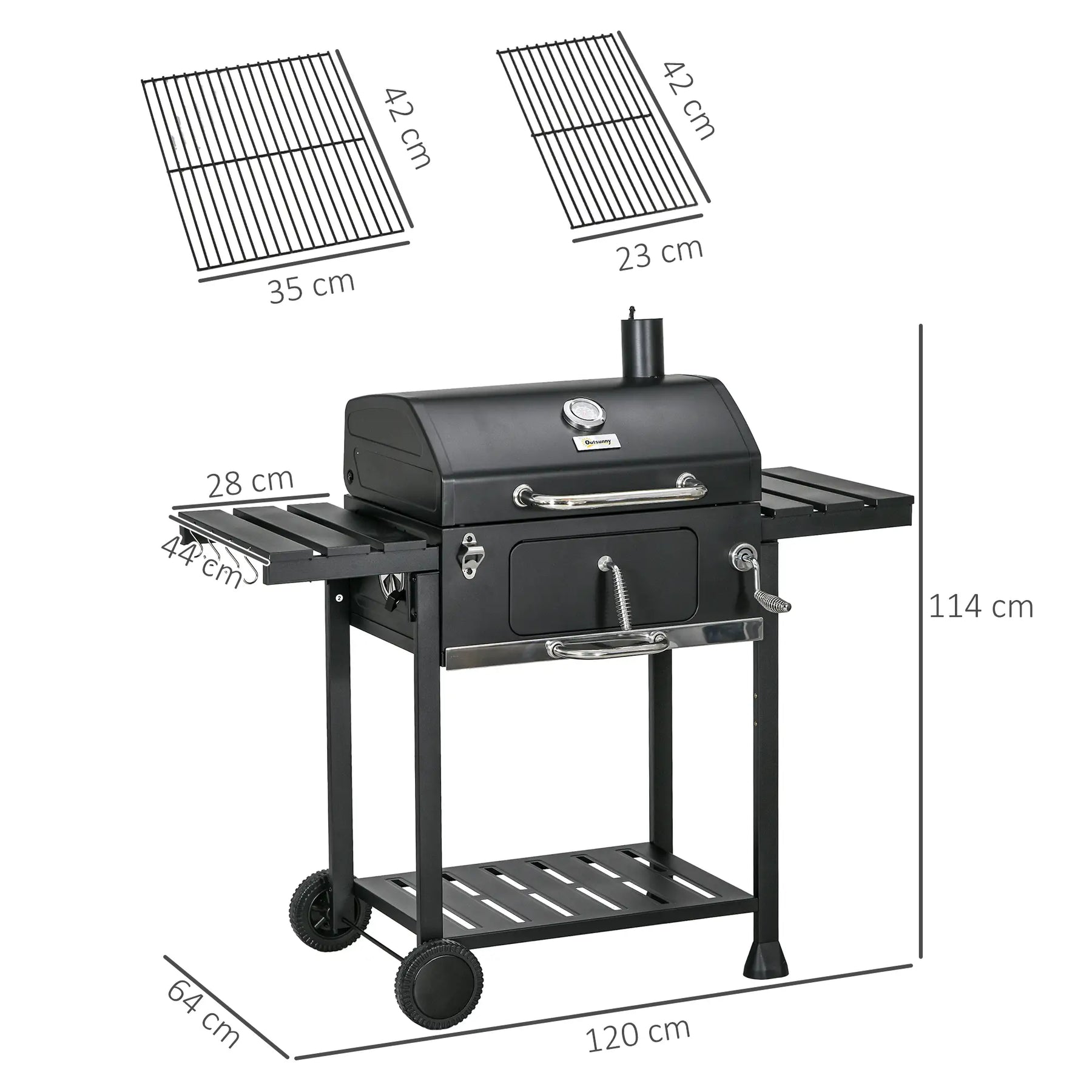 Experience versatile outdoor cooking with the Outsunny adjustable charcoal pan BBQ. Designed for charcoal enthusiasts, this grill features a crank mechanism to raise or lower the charcoal pan, allowing meticulous temperature control—ideal for searing, slow-cooking, or maintaining consistent heat.