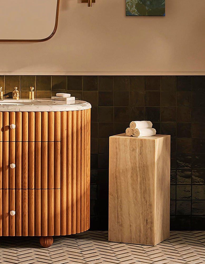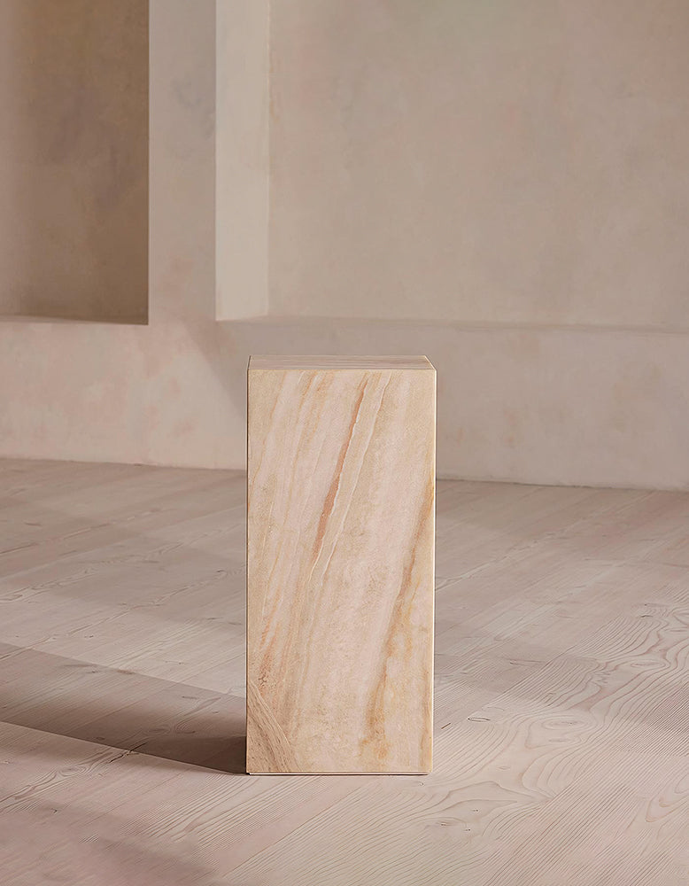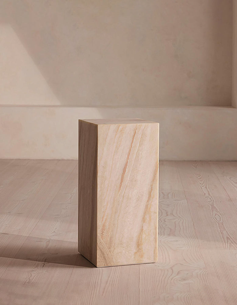 This versatile marble plinth showcases a sleek, minimalist design, making it perfect as a stylish side table or a sophisticated home décor piece. Its clean lines and timeless appeal effortlessly enhance any space, from living rooms to bathrooms. Available in a variety of customizable marble options, it offers a personalized touch to suit your interior style.