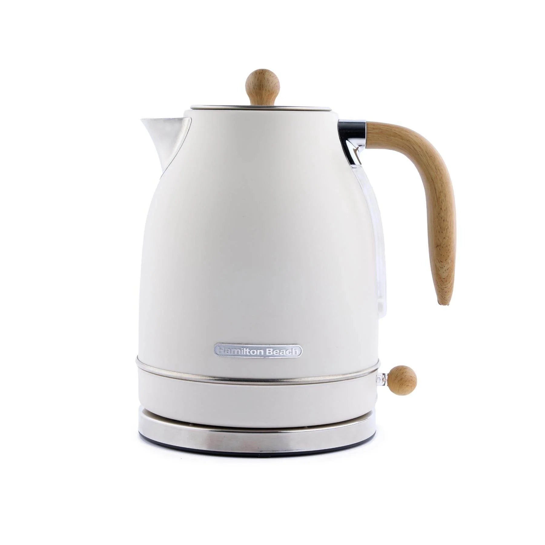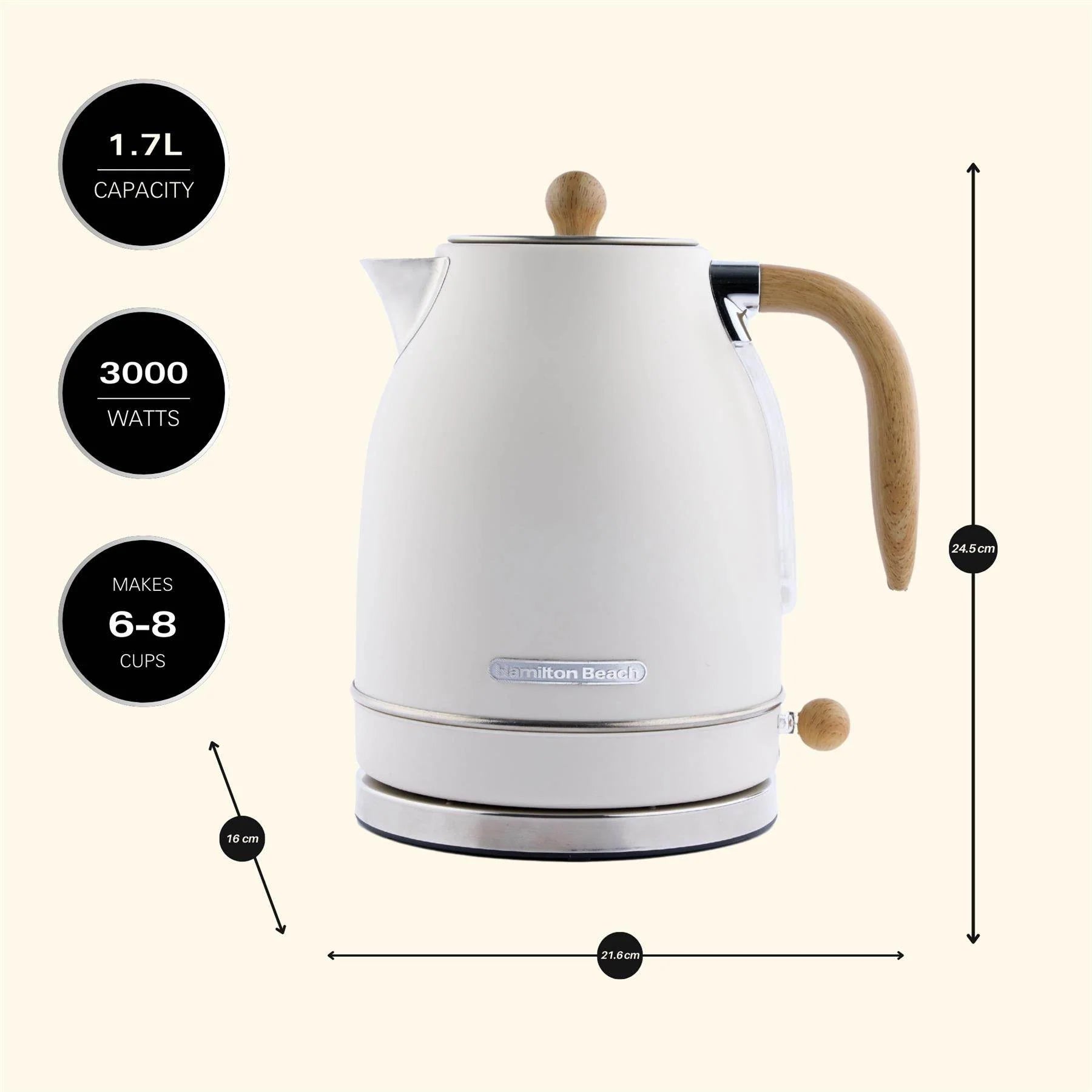 Hamilton Beach Scandi Jug 1.7L Kettle – Matte Cream with Wood Effect