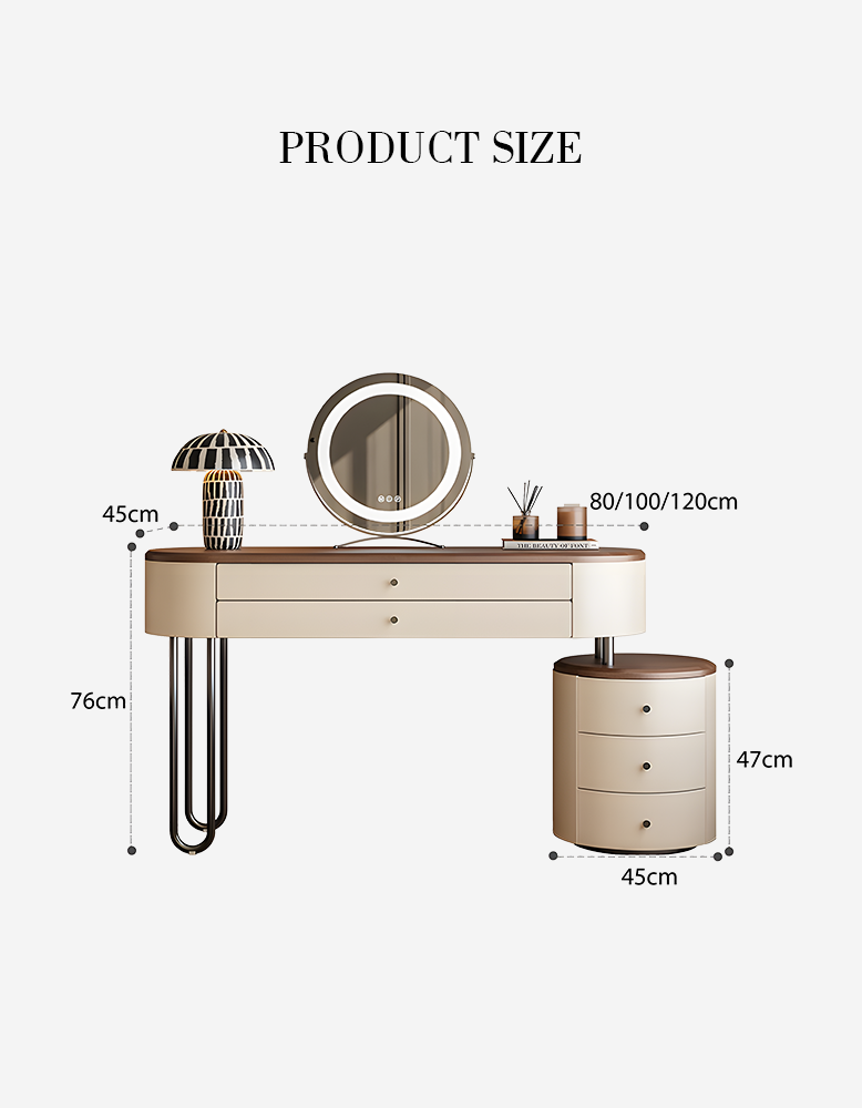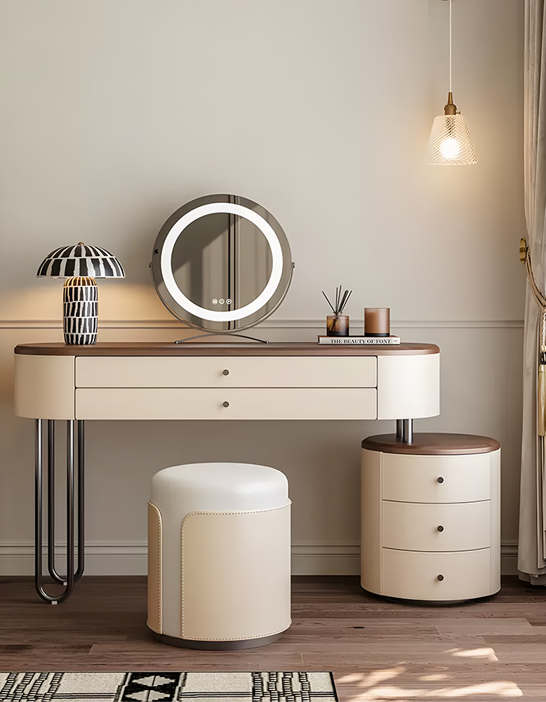 Elegant dressing tables with mirrors line the room, the cream dressing table exuding a timeless sophistication. The dressing table design features ample surface space and thoughtful details, creating the perfect spot to sit and attend to your daily beauty routine while admiring your reflection. |
